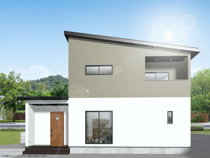 グリーンとホワイトのスタイリッシュなツートンカラーが目を引く外観。2階のバルコニーは腰壁付きのため洗濯物のプライバシー対策にも。パントリーやウォークインクローゼットなど収納スペースも豊富で、物が増えても安心な間取りも魅力です。